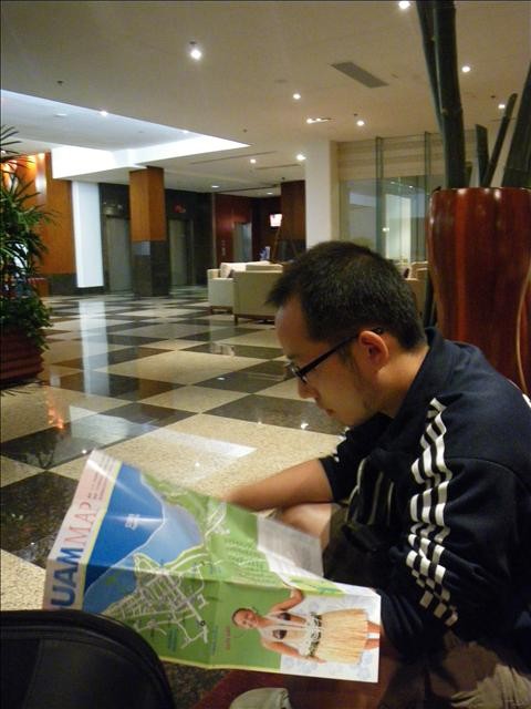 黃中很認真在研究關島的地圖
