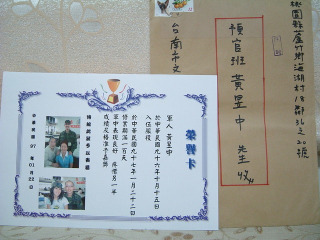 2008年的第一天,我寄了超大封的信,黃中也因此成為『成功嶺收信紅人』