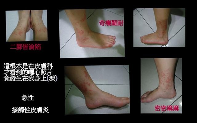 「接觸性皮膚炎」的長相很多變,它可以癢也可以痛(以癢的表現較多),大多有發紅的現象,但是也可以因嚴重程度或是急慢性表現,而呈現水泡、乾燥、脫皮等等不同現象。