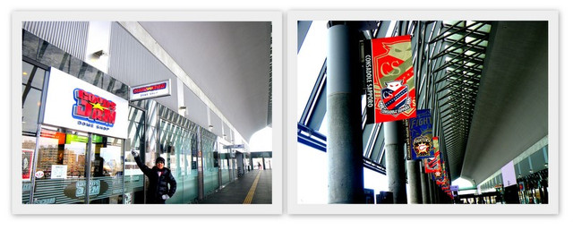 出口的左邊擺設著火腿隊吉祥娃娃和球員位置的簽名球